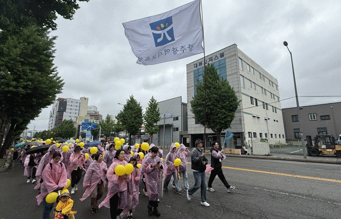 À̳¯ Çлý, Çкθð, Á÷¿ø µî ±³À°°øµ¿Ã¼ ±¸¼º¿ø 400¿© ¸íÀÌ ÇÔ²² Àü³²´ëÇб³ Á¤¹®(»çÀûÁö Á¦1È£)¸¦ Ãâ¹ßÇØ, ±¤ÁÖ¿ª ±¤Àå(»çÀûÁö Á¦2È£), ±¸ ½Ã¿Ü¹ö½ºÅ͹̳ΠÀÏ´ë(»çÀûÁö Á¦3È£)¸¦ °æÀ¯ÇÏ´Â ¡®È¶ºÒÄÚ½º¡¯¸¦ µû¶ó °É¾úÀ¸¸ç, 1980³â 5¿ùÀÇ ¿ª»ç¿Í ±× Àǹ̸¦ µÇ»õ±â°í ¹ÎÁÖÁÖÀÇ¡¤Àαǡ¤ÆòÈÀÇ °¡Ä¡¸¦ ÀÚ¿¬½º·´°Ô ÀÍÈú ¼ö ÀÖ¾ú´Ù.