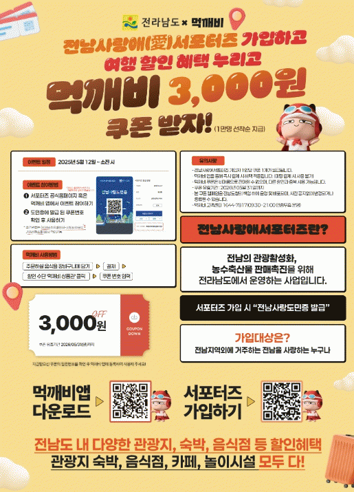 »ç¶û¾Ö ¼Æ÷ÅÍÁî¿¡ ½Å±Ô °¡ÀÔÇÑ ÀÌ¿ëÀÚ¿¡°Ô 3õ ¿ø ÇÒÀÎ ÄíÆùÀ» Á¦°øÇÑ´Ù. ÄíÆùÀº ¼±Âø¼øÀ¸·Î Áö±ÞµÇ¸ç, ¸Ô±úºñ´Â ¾à 1õ¸¸ ¿ø ±Ô¸ðÀÇ ÄíÆùÀ» Áö¿øÇϰí, ¾ÛÀÇ ¹è³Ê¿Í ÆË¾÷ µîÀ» ÅëÇØ À̺¥Æ®¸¦ È«º¸ÇÑ´Ù.