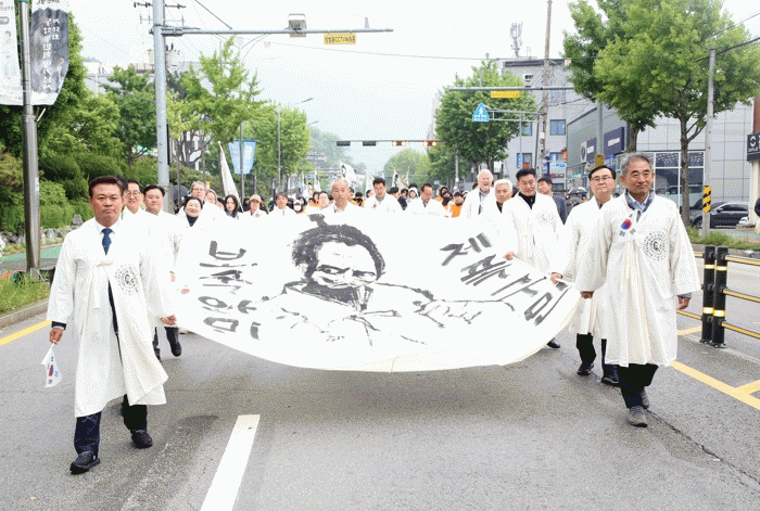 ÀÌÇмö ½ÃÀåÀº ¡°À̹ø ±â³äÁ¦´Â µ¿Çгó¹ÎÇõ¸íÀÇ ¿ª»ç¼º°ú ¼þ°íÇÑ Á¤½ÅÀ» ½Ã¹Î Áß½ÉÀÇ Çà»ç·Î ¼º°øÀûÀ¸·Î µÇ»ì¸° ¸ð¹üÀûÀÎ »ç·Ê¡±¶ó¸ç ¡°Á¤À¾ÀÌ ´ëÇѹα¹ ¹ÎÁßÇ×ÀïÀÇ ¿ª»çÀû »Ñ¸®¸¦ °£Á÷ÇÑ Á߽ɵµ½Ã·Î¼ ±× ÀÚ±à½É°ú °¡Ä¡¸¦ À̾ ¼ö ÀÖµµ·Ï ¾ÕÀ¸·Îµµ ¸ðµç Áö¿øÀ» ¾Æ³¢Áö ¾Ê°Ú´Ù¡±°í ¹àÇû´Ù.