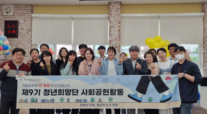 ÀüÁֽô Á¦9±â ÀüÁֽà û³âÈñ¸Á´Ü¿ø 40¸íÀÌ ¿ÃÇØ û³âÁ¤Ã¥ ¹ß±¼ ¹× Á¦¾È¿¡ ±×Ä¡Áö ¾Ê°í ÀÚ¹ßÀûÀ¸·Î ÈûÀ» ¸ð¾Æ Áö¿ª¿¡ ÇÊ¿äÇÑ °÷°÷¿¡ ¸Å¿ù »çȸ°øÇåȰµ¿À» ÃßÁøÇϰí ÀÖ´Ù°í 12ÀÏ ¹àÇû´Ù.