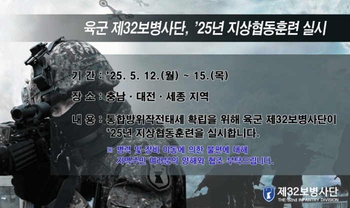¶ÇÇÑ À°±º 32º¸º´»ç´ÜÀº ½ÇÀüÀûÀÎ Áö»óÇùµ¿ÈÆ·ÃÀ» ÅëÇØ Ã¥ÀÓÁö¿ª ³» À§±â ¹ß»ý ½Ã ¿Ïº®ÇÑ ÅëÇÕ¹æÀ§ÀÛÀüÀ» ÅëÇØ `Áö¿ª Áֹΰú ÇÔ²²ÇÏ´Â` Áö¿ª¹æÀ§ ºÎ´ë·Î¼ÀÇ ¼ÒÀÓÀ» ´ÙÇÒ °ÍÀ̶ó°í ¹àÇû´Ù.
