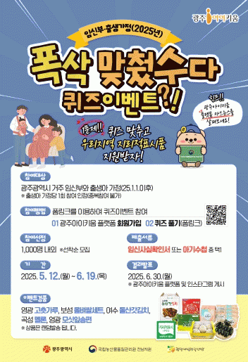 Áö¿ø ´ë»óÀº ÀÓ»êºÎ ¶Ç´Â 2025³â 1¿ù 1ÀÏ ÀÌÈÄ Ãâ»êÇÑ °¡Á¤À̸ç, ¡®±¤ÁÖ¾ÆÀÌŰ¿ò¡¯ Ç÷§ÆûÀ» ÅëÇØ °£´ÜÇÑ ÄûÁ Ç®°í ÀÓ½ÅÈ®Àμ, ¾Æ±â¼öø µî Áõºù¼·ù¸¦ Á¦ÃâÇÏ¸é µÈ´Ù.