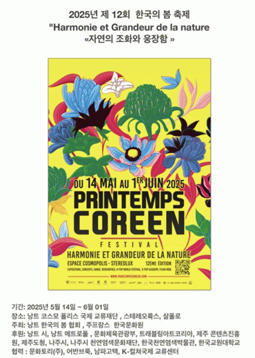 ³ªÁÖ½Ãõ¿¬¿°»ö¹®ÈÀç´ÜÀº 5¿ù 14ÀϺÎÅÍ 6¿ù 1ÀϱîÁö ÇÁ¶û½º ³¶Æ®¿¡¼ ¿¸®´Â ¡®Çѱ¹ÀÇ º½¡¯((Le Printemps Coreen) ÃàÁ¦¿¡ Âü°¡ÇÑ´Ù°í 12ÀÏ ¹àÇû´Ù.