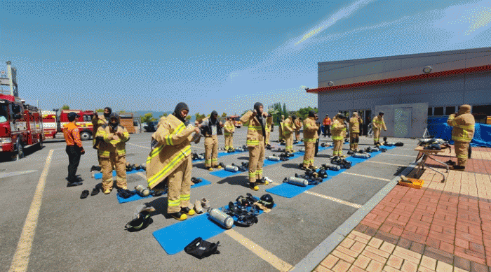 ƯÈ÷ ¹Î°£»ç¾÷Àå¿¡ ÈÀç°¡ ¹ß»ýÇÑ »óȲÀ» °¡Á¤ÇÏ¿© ½ÇÈÀç ÈÆ·ÃÀå¿¡¼ ³ó¿¬Àå Å»Ãâ ÈÆ·Ã µîÀ» ½Ç½ÃÇÏ¿© ½Å¼ÓÇÑ ´ëÀÀ ¹× ´ëÇÇ ´É·ÂÀ» °ÈÇß´Ù.