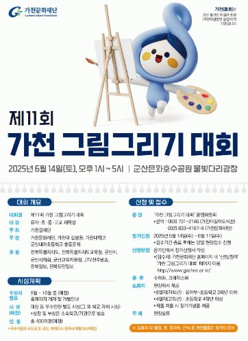 ÀÚ¼¼ÇÑ ¹®ÀÇ´Â °¡Ãµ ±×¸²±×¸®±â ´ëȸ ¿î¿µÀ§¿øÈ¸³ª °¡Ãµ¹®ÈÀç´Ü »ç¹«±¹·Î ¿¬¶ôÇÏ¸é µÈ´Ù.