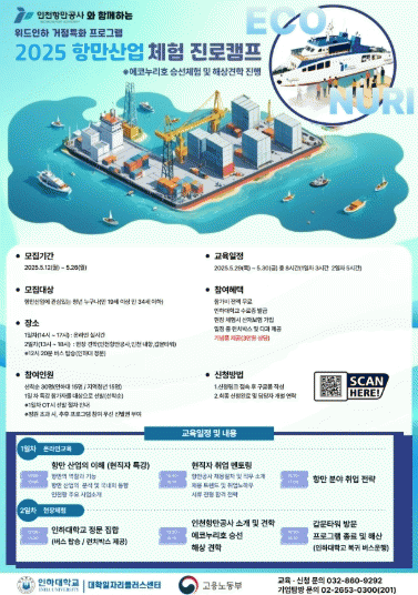 ¸ðÁý ±Ô¸ð´Â ¼±Âø¼ø ÃÑ 30¸íÀ¸·Î, ÀÎÇÏ´ëÇб³ ÀçÇлý 15¸í°ú ÀÎõ °ÅÁÖ ¹ÌÃë¾÷ û³â 15¸íÀ» ¸ðÁýÇÑ´Ù. Âü°¡ºñ´Â Àü¾× ¹«·áÀÌ¸ç ½ÅûÀ» ¿øÇÏ´Â °æ¿ì ¸ðÁý Æ÷½ºÅÍÀÇ Å¥¾Ë(QR)Äڵ带 ÅëÇØ ¿Â¶óÀÎ ½ÅûÇÒ ¼ö ÀÖ´Ù.