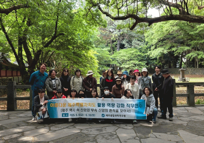 ¿¬¼ö Âü°¡ÀÚµéÀº Á¦ÁÖ °÷°÷¿¡ ³²¾Æ ÀÖ´Â ½ÅÈ¿Í ¹«¼Ó ½Å¾ÓÀÇ À¯ÀûÁö¸¦ Á÷Á¢ üÇèÇϸç Áö¿ª ¹®È¿¡ ´ëÇÑ ÀÌÇØ¸¦ ³ÐÇû´Ù.