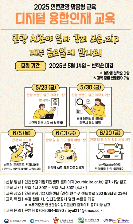 ÇÑÆí, ½Ã¿Í °ø»ç´Â À̹ø µðÁöÅÐÀ¶ÇÕÀÎÀç ±³À° ¿Ü¿¡µµ °ü³» °ü±¤±â¾÷ÀÇ Àü¹®¼ºÀ» ³ôÀ̱â À§ÇØ ¡ã6¿ù ÀÎõ °ü±¤ÀÎÀç À°¼º ¾ÆÄ«µ¥¹Ì ¡ã8~9¿ù 1ÀÎ ¹Ìµð¾î Å©¸®¿¡ÀÌÅÍ ¾ç¼º ±³À° ¡ã9¿ù IN(ÀÎõ)-À¶º¹ÇÕ°ü±¤¡¤·ÎÄà ÄÜÅÙÃ÷ ±³À° µî ´Ù¾çÇÑ ±³À° »ç¾÷À» ¿î¿µÇÒ ¿¹Á¤ÀÌ´Ù.