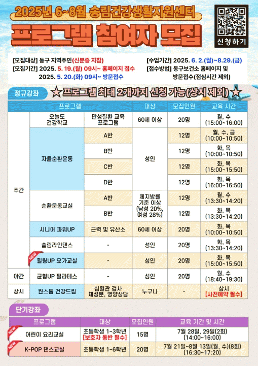 À̹ø ÇÁ·Î±×·¥Àº 6¿ù 2ÀÏ~8¿ù 29ÀϱîÁö 3°³¿ù°£ ¿î¿µµÇ¸ç, ÁֹεéÀÇ °Ç°ÁõÁøÀ» À§ÇÑ ´Ù¾çÇÑ ¿îµ¿ ¹× ±³À° ÇÁ·Î±×·¥À¸·Î ±¸¼ºÇß´Ù.