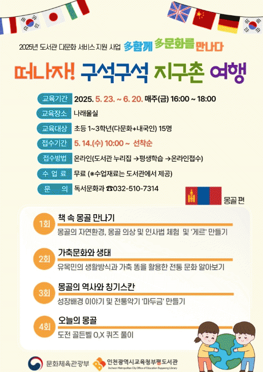 À̹ø ÇÁ·Î±×·¥Àº 5¿ù 23ÀϺÎÅÍ 6¿ù 20ÀϱîÁö ¸ÅÁÖ ±Ý¿äÀÏ ¿ÀÈÄ 4½Ã, ºÎÆòµµ¼°ü 1Ãþ ³ª·¡¿ï½Ç¿¡¼ ¿î¿µµÇ¸ç ¡ã Ã¥ ¼Ó ¸ù°ñ ¸¸³ª±â ¡ã °¡Ãà ¹®È¿Í »ýÅ ¡ã ¸ù°ñÀÇ ¿ª»ç¿Í Ī±â½ºÄ ¡ã µµÀü °ñµçº§ ÄûÁî µîÀ¸·Î ±¸¼ºµÇ¾î, ¸ù°ñ ¹®È¿¡ ´ëÇÑ ÀÌÇØ¿Í °ø°¨ ´É·ÂÀ» Ű¿ï ¼ö ÀÖµµ·Ï µ½´Â´Ù.