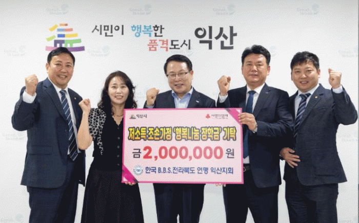ÀÍ»ê½Ã´Â ©ÅBBSÇѱ¹ÀüºÏ¿¬¸Í ÀÍ»êÁöȸ°¡ ½ÃûÀ» ¹æ¹®ÇØ Àú¼Òµæ Á¶¼Õ°¡Á¤ û¼Ò³âÀ» À§ÇÑ ÀåÇÐ±Ý 200¸¸ ¿øÀ» ±âŹÇß´Ù°í 14ÀÏ ¹àÇû´Ù.