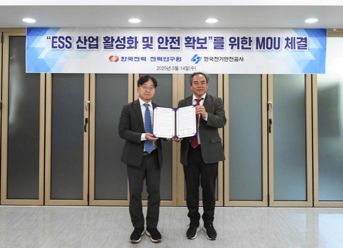 ÇÑÀüÀº 5¿ù 14ÀÏ Àü·Â¿¬±¸¿ø¿¡¼ ¡®ESS »ê¾÷ Ȱ¼ºÈ ¹× ¾ÈÀü È®º¸¡¯¸¦ À§ÇÑ ¾÷¹«Çù¾àÀ» ü°áÇß´Ù. Çù¾à½Ä¿¡´Â ÇÑÀü Àü·Â¿¬±¸¿ø ½ÉÀºº¸ ¿øÀå°ú Çѱ¹Àü±â¾ÈÀü°ø»ç Àü±â¾ÈÀü¿¬±¸¿ø ¼Û±æ¸ñ ¿øÀåÀÌ Âü¼®Çß´Ù.