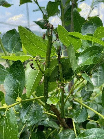 Ä®½· °áÇÌ Áõ»óÀº ÁÖ·Î ½ÅÃÊ »ýÀå±â¿¡ ³ªÅ¸³ª¸ç, ¾î¸° ÀÙ ³¡¿¡¼ ½ÃÀÛµÈ °ËÀº ¹ÝÁ¡ÀÌ ÀÙ ³»ºÎ·Î È®»êµÇ°í, Áõ»óÀÌ ½ÉÇØÁú °æ¿ì ½ÅÃʰ¡ °í»çÇϱ⵵ ÇÑ´Ù. °ÀüÁ¤À» ÅëÇØ ½ÅÃʸ¦ ¹Þ¾Æ »õ°¡Áö¿¡ Âø°ú¸¦ À¯µµÇÏ´Â ¿Õ´ëÃßÀÇ Æ¯¼º»ó, ½ÅÃʰ¡ °í»çÇÏ¸é °ú½Ç »ý»ê·®¿¡ Å« ¿µÇâÀ» ÁÙ ¼ö¹Û¿¡ ¾ø´Ù.