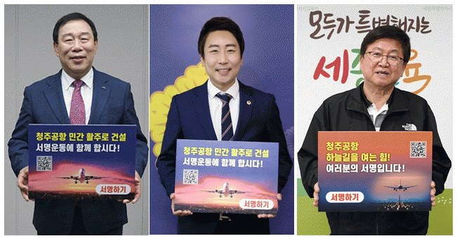 ¡®Ã»ÁÖ°øÇ× ¹Î°£Àü¿ë ȰÁÖ·Î °Ç¼³¡¯À» À§ÇÑ 100¸¸ ¼¸í¿îµ¿Àº 6¿ù ¸»±îÁö ÁøÇàµÇ¸ç, ÃæºÏµµ´Â ½Ã±º, ±¤¿ª´Üü, Áö¹æÀÇȸ, ½Ã¹Î´Üü µî°ú ÇÔ²² °ø°¨´ë È®»ê¿¡ ÈûÀ» ¸ðÀ¸°í ÀÖ´Ù.
