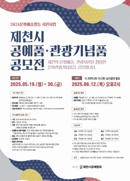 °ø¸ðÀü 1Â÷ ½Åû¼ Á¢¼ö´Â ¿À´Â 5¿ù 19ÀϺÎÅÍ 30ÀϱîÁöÀ̸ç, 2Â÷ ÃâǰÀÛ(½Ç¹°) Á¢¼ö´Â 6¿ù 9ÀÏ ¿ù¿äÀÏ ¿ÀÀü 9½ÃºÎÅÍ ³· 12½Ã±îÁö Á¦Ãµ½Ã¹Îȸ°ü¿¡¼ ÀÌ·ïÁø´Ù.