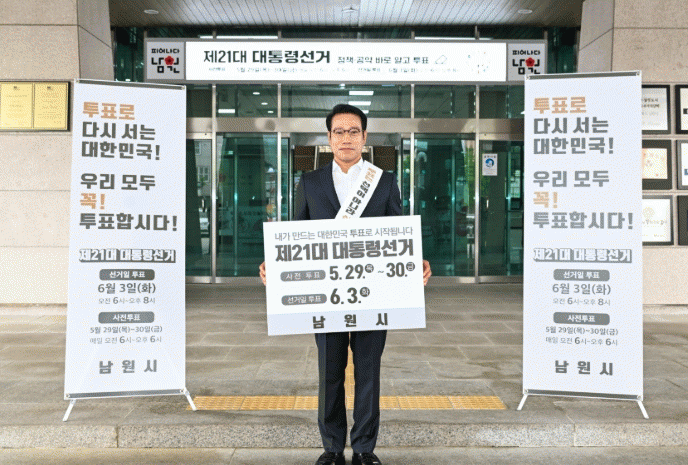 ÃÖ°æ½Ä ³²¿ø½ÃÀåÀº ¡°ÅõÇ¥´Â ¹ÎÁÖÁÖÀÇÀÇ ½ÃÀÛÀÌÀÚ ¿Ï¼ºÀÔ´Ï´Ù. ½Ã¹Î ÇÑ ºÐ ÇÑ ºÐÀÇ Âü¿©°¡ ´õ ³ªÀº ¹Ì·¡¸¦ ¸¸µå´Â ±æÀÔ´Ï´Ù.¡±¶ó¸ç, ¡°°øÁ¤Çϰí Åõ¸íÇÑ ¼±°Å°¡ Ä¡·¯Áú ¼ö ÀÖµµ·Ï ÃÖ¼±À» ´ÙÇϰڽÀ´Ï´Ù. 6¿ù 3ÀÏ, ¼ÒÁßÇÑ ÇÑ Ç¥ ²À Çà»çÇØ Áֽñ⠹ٶø´Ï´Ù.¡±¶ó°í ´çºÎÇß´Ù.