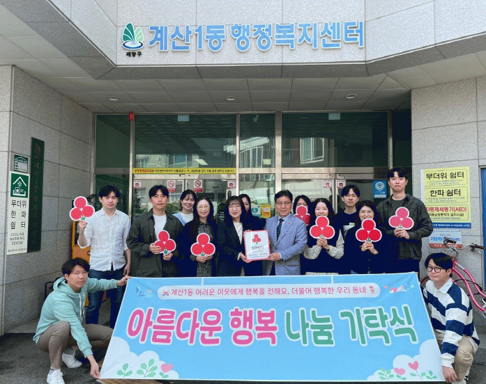 À̳¯ ÇöÆÇ Àü´Þ½Ä¿¡ Âü¿©ÇÑ »çȸº¹Áö°øµ¿¸ð±Ýȸ ¹Ú¿ëÈÆ »ç¹«Ã³ÀåÀº ¡°°è¾ç±¸ ³» 12°³ µ¿ÇàÁ¤º¹Áö¼¾ÅÍ Áß °è»ê1µ¿ÀÌ ÃÖÃÊ·Î ¡®ÂøÇÑ ÀÏÅÍ¡¯ ÇöÆÇÀ» ¹Þ°Ô µÇ¾î ¶æ±í´Ù.¡±¶ó¸ç ¡°Á÷¿ø ¸ðµÎ°¡ ³ª´®¿¡ µ¿ÂüÇÏ´Â ¸ð½ÀÀÌ Áö¿ª»çȸ¿¡ ±Í°¨ÀÌ µÈ´Ù.¡±¶ó°í ¸»Çß´Ù.