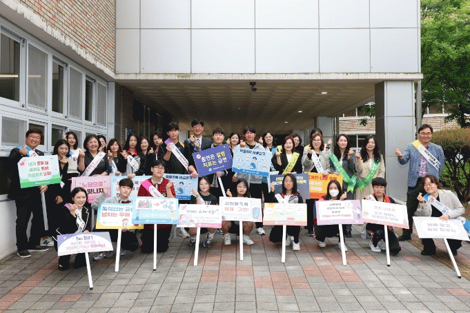 À̹ø È«º¸ ¿îµ¿(Ä·ÆäÀÎ)¿¡´Â ÇлýµéÀÇ °Ç°ÇÑ ¼ºÀå¿¡ µµ¿òÀ» ÁÖ±â À§ÇØ Çлý, ±³»ç, ¼¼Á¾½Ã±³À°Ã» Á÷¿ø µî ±³À°°øµ¿Ã¼°¡ ÇÔ²² Âü¿©ÇÏ¿© Èí¿¬?¸¶¾à·ù ¿¹¹æ ¼Õ ÆÖ¸»À» µé°í ±¸È£¸¦ ¿ÜÄ¡¸ç ±Ý¿¬ È«º¸¹°À» ¹èºÎÇÏ´Â µî ÇлýµéÀÇ µî±·±æ ¾ÆÄ§À» Ȱ±âÂù ºÐÀ§±â·Î °¡µæ ä¿ü´Ù.