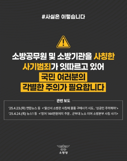 °±â¿ø ¼ÀåÀº ¡°¿ì¸® ¼Ò¹æ±â°üÀº ¹Î°£¾÷ü¿¡ ¹°Ç° ´ë¸®±¸¸Å¸¦ ¿äûÇϰųª °ø°ø±â°üÀ» »çÄªÇØ ±ÝÀüÀû ÇÇÇØ¸¦ À¯µµÇÏ´Â ÇàÀ§´Â Àý´ë ¾ø´Ù¡±¸ç, ¡°Ãâó°¡ ºÒ¹®¸íÇÑ °ø¹®À̳ª °Å·¡¿äûÀ» ¹ÞÀ» °æ¿ì ¹Ýµå½Ã °¡±î¿î ¼Ò¹æ¼¡¤¼Ò¹æº»ºÎ·Î ¿¬¶ôÇØ Áֽñ⠹ٶõ´Ù¡±°í ÀüÇß´Ù.