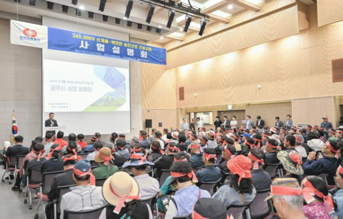 À̳¯ Çѱ¹Àü·Â°ø»ç´Â ½Å°è·æ-ºÏõ¾È ¼ÛÀü¼±·Î °Ç¼³ »ç¾÷ Áֹμ³¸íȸ¸¦ °³ÃÖÇÏ ¿´À¸³ª, ¼³¸íȸ¿¡ ¾Õ¼ °øÁֽà ÁֹΠ¾à 350¸íÀÌ ¾ÆÆ®¼¾ÅÍ °í¸¶ ¾Õ¿¡¼ »ç¾÷ Áß´ÜÀ» Ã˱¸ÇÏ´Â Áýȸ¸¦ ¿¾ú´Ù.