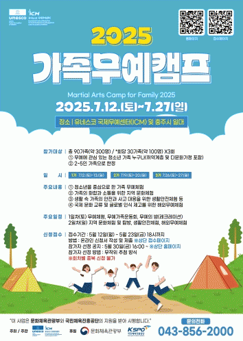 Ä·ÇÁ´Â 7¿ù 12ÀÏ(Åä)ºÎÅÍ ÃÑ 3Â÷·Ê ¸ÅÁÖ ÁÖ¸» ¹«¿¹¼¾ÅÍ¿Í ÃæÁֽà ÀÏ´ë¿¡¼ ÁøÇàµÈ´Ù. Âü°¡ÀÚµéÀº Åðß, ¾¾¸§, Ȱ½î±â µîÀÇ ÀüÅ빫¿¹¿Í À¯³×½ºÄÚ Àηù¹«Çü¹®ÈÀ¯»ê ´ëÇ¥¸ñ·Ï µîÀç ¹«¿¹ÀΠįº¸µð¾ÆÀÇ º¸Ä«Å並 üÇèÇϰí, ½Ç»ýȰ¿¡ À¯¿ëÇÑ CPR°ú °°Àº ¾ÈÀü ±³À°µµ ¹Þ´Â´Ù.
