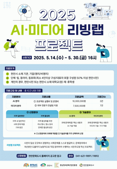 ¼±Á¤µÈ ÇÁ·ÎÁ§Æ®´Â ¿ÃÇØ õ¾È¿¡¼ ½ÇÁõ±îÁö ÁøÇàÇÒ ¿¹Á¤À¸·Î, ½Ã¹ÎÀÇ ´Ù¾çÇÑ ¾ÆÀ̵ð¾î°¡ ¡®AI¡¤¹Ìµð¾î ¸®ºù·¦ ÇÁ·ÎÁ§Æ®¡¯¸¦ ÅëÇØ ½ÇÁ¦ ±¸ÇöµÇ´Â °á°ú¸¦ Á÷Á¢ ´«À¸·Î È®ÀÎÇÒ ¼ö ÀÖ´Ù.