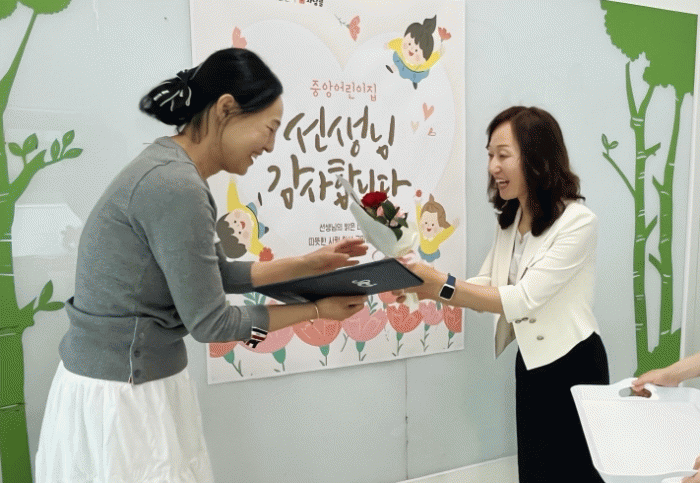 ÀÌ¿Í ´õºÒ¾î ³²¿ø½ÃÀ°¾ÆÁ¾ÇÕÁö¿ø¼¾ÅÍ´Â °ü³» ¾î¸°ÀÌÁýµéÀÌ ½º½ÂÀÇ ³¯À» ±â³äÇÏ°í ±³»ç¿¡ ´ëÇÑ °¨»çÀÇ ¸¶À½À» Ç¥ÇöÇÒ ¼ö ÀÖµµ·Ï Çö¼ö¸· Á¦ÀÛÀ» Áö¿øÇϸç Áö¿ª º¸À° ÇöÀå¿¡ Ȱ·ÂÀ» ºÒ¾î³Ö¾ú´Ù.