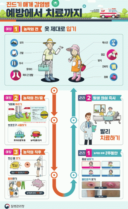 ³óÀÛ¾÷ ¹× ¾ß¿ÜȰµ¿ ½Ã ¸¹ÀÌ ¹ß»ýÇϹǷΠ°¨¿° ¿¹¹æÀ» À§Çؼ± ±ä ¿Ê, ¸ðÀÚ, ¾ç¸» µîÀ» Âø¿ëÇØ ³ëÃâ ºÎÀ§¸¦ ÁÙÀ̰í, ±âÇÇÁ¦¸¦ »ç¿ëÇØ¾ß ÇÑ´Ù.