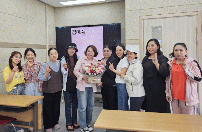 Çѱ¹¾î ¼ö¾÷À» ÅëÇØ Çѱ¹ »çȸ¿¡ ÀûÀÀ ÁßÀÎ ¼ö°»ýµéÀº À̳¯, ÀڽŵéÀ» À§ÇØ Çå½ÅÀûÀ¸·Î °¡¸£Ä§À» ÁÖ´Â °»çµé¿¡°Ô Á¤¼º²¯ ¸¶·ÃÇÑ Ä«³×À̼ǰú °¨»ç ¼±¹°À» Àü´ÞÇÏ¸ç µû¶æÇÑ ¸¶À½À» Ç¥ÇöÇß´Ù.