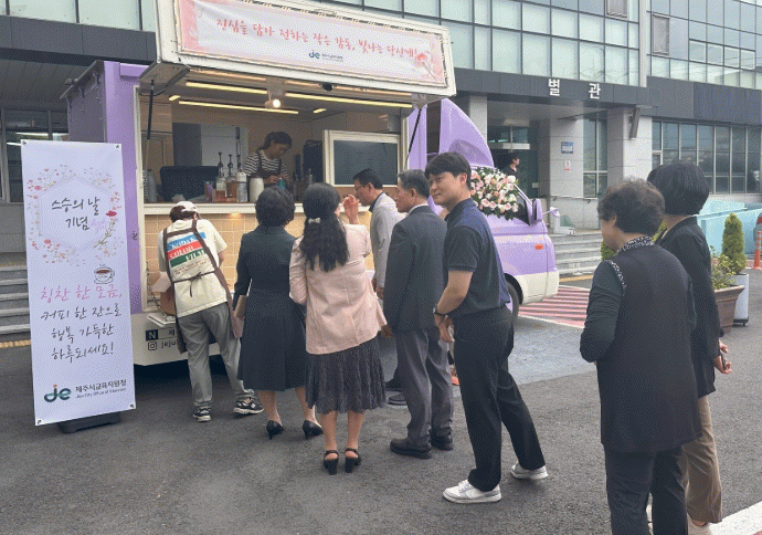 ÇÑÆí °¨»çÀÇ ¸¶À½À» ´ãÀº ºñ´© Ä«³×ÀÌ¼Ç ÁõÁ¤, »÷µåÀ§Ä¡¿Í À½·á Á¦°ø,¡®´ç½ÅÀÌ ÀÖ¾î Á¦ÁÖ±³À°ÀÌ ºû³³´Ï´Ù¡¯¶ó´Â ¸Þ½ÃÁö¸¦ ´ãÀº Æ÷ÅäÁ¸ ¿î¿µ µî Á÷¿øµéÀÌ ÇÔ²² °ø°¨Çϰí Áñ±æ ¼ö ÀÖ´Â ´Ù¾çÇÑ È°µ¿ÀÌ ¸¶·ÃµÆ´Ù.