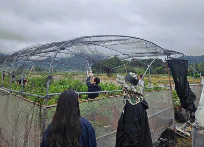 À̹ø ÀÏ¼Õ µ½±â´Â Ãà»ê½Äǰ°ú Á÷¿ø 17¸íÀÌ Âü¿©ÇØ ¿µ³óö ÀÏ¼Õ ºÎÁ·À¸·Î ÀÎÇØ ¾î·Á¿òÀ» °Þ°í ÀÖ´Â ³ó°¡¿¡ ÀÛ°Ô³ª¸¶ º¸ÅÆÀÌ µÇ°íÀÚ ÃßÁøÇßÀ¸¸ç, Âü¿© Á÷¿øµéÀº ºñ ¿À´Â ³¯¾¾¿¡µµ ±¸½½¶¡À» È긮¸ç ºí·çº£¸® Àç¹è ³ó°¡¸¦ µ½´Â ±ÍÁßÇÑ ½Ã°£À» º¸³Â´Ù.