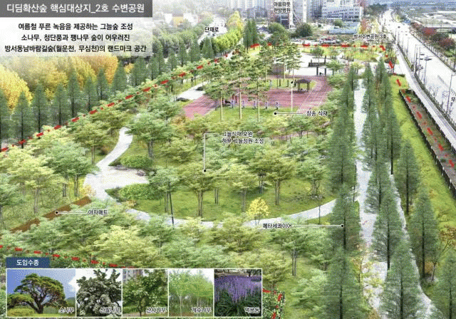 ¹æ¼¼öº¯°ø¿ø¿¡´Â ¡®µðµõ?È®»ê½£¡¯ÀÌ 1.9ha¿¡ Á¶¼ºµÇ¸ç, 4¿ù ¸» °ø»ç¿¡ µ¹ÀÔÇØ 8¿ù ¸» ÁذøÀ» ¸ñÇ¥·Î ÁøÇà ÁßÀÌ´Ù. »ç¾÷ºñ´Â 33¾ï¿øÀÌ ÅõÀԵȴÙ. ¿ù¿îõº¯ ÀÏ¿ø¿¡¼´Â ¡®¿¬°á½£¡¯À» 2.9ha ¸éÀû¿¡ ¸¸µç´Ù. »ç¾÷ºñ 13¾ï¿øÀ» µé¿© 4¿ù¿¡ Âø°øÇØ 6¿ù Áß ¸¶¹«¸® ¿¹Á¤ÀÌ´Ù.
