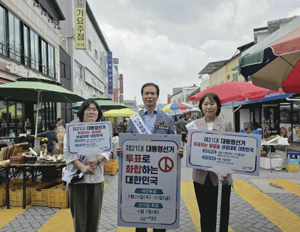 ±ºÀº ÅõÇ¥ Âü¿© ºÐÀ§±â È®»ê°ú ÁֹεéÀÇ Àû±ØÀûÀÎ ÅõÇ¥ Âü¿©¸¦ µ¶·ÁÇϱâ À§ÇØ Á¶º´¿Á ±º¼ö¿Í °øÁ÷ÀÚµéÀÌ Áö³ 17ÀÏ À½¼º½ÃÀåÀ» ½ÃÀÛÀ¸·Î ÀüÅë½ÃÀåÀ» ã¾Æ ÅõÇ¥Âü¿© Ä·ÆäÀÎÀ» ÁøÇàÇϰí Çö¼ö¸·À» °Ô½ÃÇÏ¸ç ´Ù¾çÇÑ È«º¸ Ȱµ¿À» ÆîÄ¡°í ÀÖ´Ù.