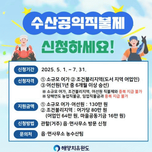 ¼ö»ê°øÀÍÁ÷ºÒÁ¦´Â ¼ö»ê¾÷¡¤¾îÃÌÀÇ °øÀÍ ±â´É ÁõÁø°ú ¾î¾÷ÀÎÀÇ ¼Òµæ ¾ÈÁ¤À» µµ¸ðÇϱâ À§ÇÑ Á¦µµ·Î ¡ã¼Ò±Ô¸ð ¾î°¡ Á÷ºÒÁ¦ ¡ãÁ¶°ÇºÒ¸®Áö¿ª Á÷ºÒÁ¦ 2Á¾ÀÌ ÀÖ´Ù.