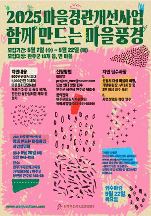 ¡®¸¶À»°æ°ü°³¼±»ç¾÷ - ÇÔ²² ¸¸µå´Â ¸¶À»Ç³°æ¡¯»ç¾÷Àº ¿ÏÁÖ±ºÀÌ Áö³ 2021³âºÎÅÍ ÃßÁøÇؿ °øµ¿Ã¼¹®Èµµ½Ã»ç¾÷ÀÇ ÀÏȯÀ¸·Î, µµ½ÃÀç»ýÀÇ »ç°¢Áö´ë¸¦ ÁֹΠÁÖµµ·Î °³¼±ÇÏ°í ¸¶À» °íÀ¯ÀÚ¿ø°ú ¿¬°èÇÑ °æ°üƯ¼ºÈ¸¦ µµ¸ðÇÏ´Â »ç¾÷ÀÌ´Ù. ¿ÃÇØ´Â ÃÑ 12°³ ¸¶À»À» ¼±Á¤ÇÏ¿©, ¸¶À»´ç 500¸¸ ¿ø¿¡¼ ÃÖ´ë 1,000¸¸ ¿ø±îÁö Â÷µî Áö¿øµÈ´Ù.