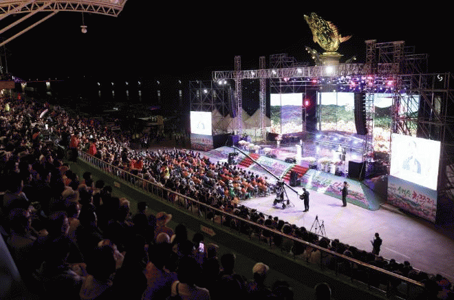 23ÀÏ ¹ã¿¡´Â ¼öº¯ Ư¼³¹«´ë ¾Õ ¾ç¹é»êÀ» ¹è°æÀ¸·Î ¾à 700m¿¡ ´ÞÇÏ´Â ÃÊ´ëÇü ¸ÖƼ¹Ìµð¾î ¼î ¡®·¹ÀÌÀú¼î+ºÒ²É³îÀÌ¡¯°¡ ÆîÃÄÁø´Ù.