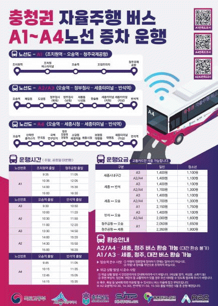 Áö³ÇØ 12¿ù¿¡´Â ¿À¼Û¿ª¡±¹Ã¥¿¬±¸´ÜÁö¡¹Ý¼®¿ª(33.1km)À» ¿îÇàÇÏ´Â A4 ³ë¼±À» ½Å¼³Çß°í, ¿ÃÇØ 3¿ù¿¡´Â ÃæºÏ¿¡¼ Á¶Ä¡¿ø¿ª¡¿À¼Û¿ª¡Ã»ÁÖ°øÇ×(29.5km)À» ¿À°¡´Â A1 ³ë¼±À» »õ·Ó°Ô ¿î¿µ ÁßÀÌ´Ù.