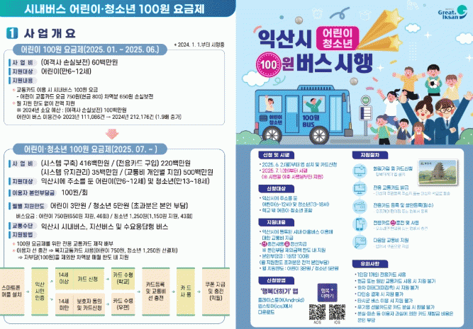 ÀÍ»ê½Ã´Â ±âÁ¸¿¡ ¾î¸°ÀÌ(6~12¼¼)¸¦ ´ë»óÀ¸·Î ÃßÁøÇØ ¿Â '100¿ø ¹ö½º ¿ä±ÝÁ¦'¸¦ ¿À´Â 7¿ùºÎÅÍ Ã»¼Ò³â(13~18¼¼)±îÁö È®´ë Àû¿ëÇÑ´Ù°í 21ÀÏ ¹àÇû´Ù.