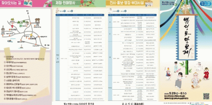 ÁÖ¿ä Çà»ç·Î´Â ±¹°¡¹«ÇüÀ¯»êÀÇ ÁöÁ¤Çà»çÀÎ ¿ë¿ÕÁ¦¸¦ ºñ·ÔÇØ ¼±À¯³îÀÌ, ½£ÀïÀÌ Àü±¹±¹¾Ç°æ¿¬´ëȸ µî ÀüÅë ¹Î¼Ó¡¤Á¦ÀüÇà»ç¿Í ±â³ä½Ä¡¤´Ü¿ÀÁ¦ ¾¾¸§´ëȸ¡¤Ã»¼Ò³â Æä½ºÆ¼¹ú¡¤Çлý Â÷¿¹Àý °æ¿¬´ëȸ¡¤¹Î¼Ó³îÀÌ °æ¿¬´ëȸ¡¤´Ü½ÉÁÙ³îÀÌ¡¤°°¼ö¿ù·¡¡¤Ã¢Æ÷ ¸Ó¸®°¨±â µî °¢Á¾ üÇè ¹× ÃÊû°¡¼ö °ø¿¬±îÁö ¿ì¸® °íÀ¯ÀÇ ÀüÅëÀ» °è½ÂÇÏ°í ´ëÁß°ú ¼ÒÅëÇÏ´Â ¹®È ÃàÁ¦ÀÇ ÀåÀ¸·Î¼, ³²³à³ë¼Ò ´©±¸³ª Âü¿©Çϰí Áñ±æ ¼ö Àִ dz¼ºÇÑ º¼°Å¸®¿Í üÇè ÇÁ·Î±×·¥ÀÌ ÁغñµÅ ÀÖ´Ù.