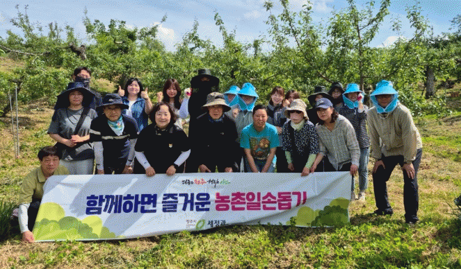 Á÷¿øµéÀº »ç°ú³ª¹« Àû°ú ÀÛ¾÷À» µ½°í ÁÖº¯ ȯ°æ Á¤¸® µîÀ» ÁøÇàÇØ ³ó°¡¿¡ ÈûÀ» º¸ÅÉ´Ù.