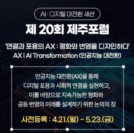 À̹ø ¼¼¼ÇÀº Á¦ÁÖµµ°¡ Áö³ÇØ 12¿ù ¹ßÇ¥ÇÑ ¡®Á¦ÁÖ ÀΰøÁö´É(AI).µðÁöÅÐ ´ëÀüȯ ·Îµå¸Ê¡¯ÀÇ ºñÀüÀÎ ¡®ÀΰøÁö´É(AI)°ú µðÁöÅзΠ³ª¾Æ°¡´Â ±Û·Î¹ú Á¦ÁÖ, ¸ðµÎ°¡ ´©¸®´Â Áö¼Ó °¡´ÉÇÑ »çȸ¡¯¸¦ ½ÇÇöÇϱâ À§ÇÑ Àü·«Àû ¿¬Àå¼±¿¡¼ ±âȹµÆ´Ù.