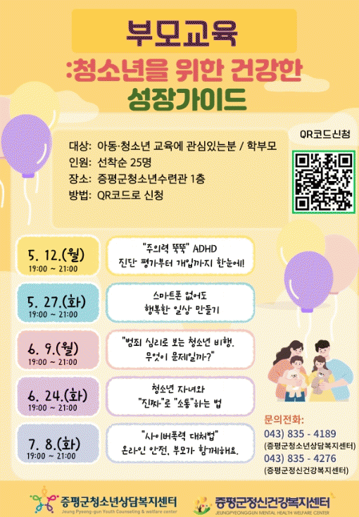 ÁõÆò±ºÃ»¼Ò³â»ó´ãº¹Áö¼¾ÅÍ¿Í ÁõÆò±ºÁ¤½Å°Ç°º¹Áö¼¾ÅͰ¡ °øµ¿ ÁÖ°üÇÏ´Â À̹ø ±³À°Àº û¼Ò³âÀÇ °Ç°ÇÑ ¼ºÀå°ú ºÎ¸ðÀÇ ¾çÀ° ¿ª·® °È¸¦ À§ÇØ ¸¶·ÃµÆ´Ù.