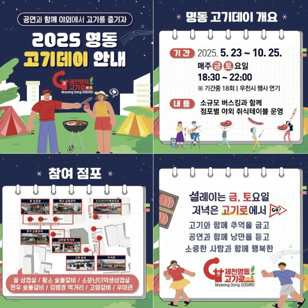 ¸ÅÁÖ ±Ý¡¤Åä¿äÀÏ ¿ÀÈÄ 6½Ã 30ºÐ ~ 10½Ã±îÁö ¸íµ¿ °í±â·Î 7°³ ½Ä´ç ¾Õ ³ë»óÁÖÂ÷Àå¿¡¼ 5¿ù 23ÀϺÎÅÍ 10¿ù 25ÀϱîÁö ±â°£ Áß 18ȸ Çà»ç¸¦ ¿î¿µÇÒ ¿¹Á¤ÀÌ´Ù.