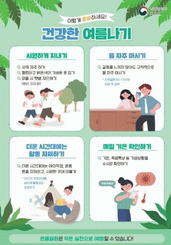 ¿Â¿ÁúȯÀ» ¿¹¹æÇϱâ À§Çؼ´Â ¡â½Ã¿øÇÑ °÷¿¡¼ Áö³»¸ç(±×´Ã), ¡â¹°À» ÀÚÁÖ ¸¶½Ã°í(¹°) ¡â´õ¿î ½Ã°£´ë¿¡´Â Ȱµ¿À» ÀÚÁ¦(ÈÞ½Ä)ÇÏ´Â °ÍÀÌ Áß¿äÇÏ´Ù.