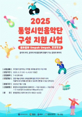 2025 Å뿵½Ã¹ÎÀ½¾Ç´Ü ±¸¼º Áö¿ø»ç¾÷¡®À½ÆÄÀ½ÆÄ¡¯´Â ¹®ÈüÀ°°ü±¤ºÎ°¡ ÁÖÃÖÇϰí Å뿵½Ã Å뿵ÇÑ»ê´ëø¹®ÈÀç´Ü Å뿵¹®Èµµ½Ã¼¾ÅÍ¿¡¼ ÁÖ°üÇÏ´Â À½¾ÇÀÌ È帣´Â µµ½Ã »ç¾÷ÀÇ ÀÏȯÀ¸·Î, Å뿵 ½Ã¹ÎµéÀÌ ÁÖü°¡ µÇ´Â ½Ã¹ÎÀ½¾Ç´ÜÀ» ±¸¼ºÇØ ÀÚÀ²ÀûÀ̰í Áö¼Ó °¡´ÉÇÑ ´Üü·Î Ȱµ¿ÇÒ ¼ö ÀÖµµ·Ï Áö¿øÇÏ´Â »ç¾÷ÀÌ´Ù.