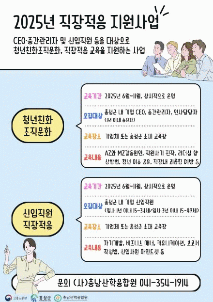 ÇÑÆí ¡®Á÷ÀåÀûÀÀ Áö¿ø»ç¾÷¡¯Àº Àη ºÎÁ·, ºñ¿ë ºÎ´ã µîÀ¸·Î ½ÅÀÔÁ÷¿øÀÇ ¾÷¹« ¹× Á¶Á÷ÀûÀÀ Áö¿ø¿¡ ÇѰ谡 ÀÖ´Â »ê´Ü ÀÔÁÖ±â¾÷À» ´ë»óÀ¸·Î Á÷ÀåÀûÀÀ ±³À° ÇÁ·Î±×·¥À» Á¦°øÇϰí, ±âÁ¸ Á÷¿ø¡¤°ü¸®Àڵ鿡°Ô´Â û³â Ä£È Á¶Á÷¹®È ÇÁ·Î±×·¥À» ¼ö·áÇÏ°Ô ÇÏ¿© û³âµéÀÇ Á¶±â Åð»ç¸¦ ¿¹¹æÇÏ´Â »ç¾÷ÀÌ´Ù.