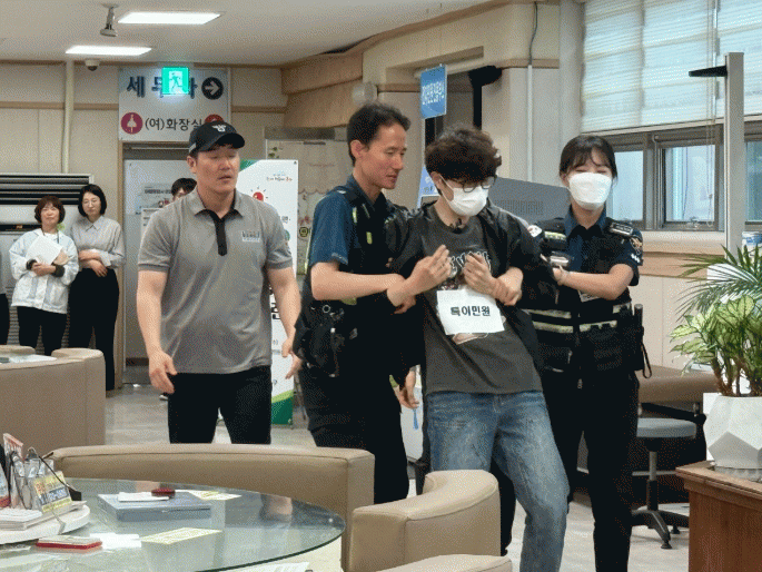 À̹ø ÈÆ·ÃÀº ¹Î¿ø¾÷¹«Ã³¸® Áß ¹ß»ýÇÒ ¼ö ÀÖ´Â ¹Î¿øÀÎÀÇ Æø¾ð¡¤ÆøÇà µîÀ» ½ÇÁ¦ »óȲÀ¸·Î °¡Á¤ÇÑ ÈÄ ½Å¼ÓÈ÷ ó¸®ÇÏ´Â ¹ýÀ» ÈÆ·ÃÇÏ¿© ´ã´ç °ø¹«¿ø ¹× ¹æ¹® ¹Î¿øÀÎÀÇ 2Â÷ ÇÇÇØ¸¦ ¿¹¹æÇϰí, ¾ÈÁ¤ÇÑ ±Ù¹« ȯ°æÀ» Á¶¼ºÇϱâ À§ÇØ ½Ç½ÃµÆ´Ù.