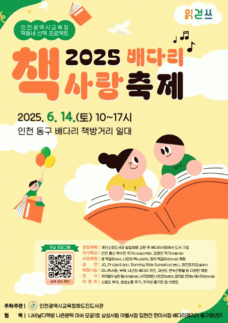 À̹ø ÃàÁ¦´Â ÀÎõ µ¿±¸ ¿øµµ½É Ȱ¼ºÈ¸¦ À§ÇØ Áö¿ª ¼Á¡°ú Çù·ÂÇØ ÁøÇàÇÏ´Â ¡®Ã¥µ¿³× »êÃ¥ ÇÁ·ÎÁ§Æ®¡¯ÀÇ ÀÏȯÀ¸·Î, ½Ã¹ÎµéÀÌ ÀÐ°í °È°í ¾²´Â üÇèÀ» ÅëÇØ Ưº°ÇÑ ¹è¿ò°ú Áñ°Å¿òÀ» ´©¸± ¼ö ÀÖµµ·Ï ±¸¼ºµÆ´Ù.