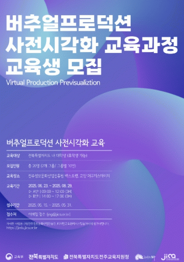 ÀüÁÖÁ¤º¸¹®È»ê¾÷ÁøÈï¿øÀº ÀüºÏƯº°ÀÚÄ¡µµ ±³À°¹ßÀüƯ±¸ ½Ã¹üÁö¿ª ¿î¿µ»ç¾÷ÀÇ ÀÏȯÀ¸·Î ¹öÃß¾ó ÇÁ·Î´ö¼Ç(Virtual Production)ÀÇ ÇÙ½É °úÁ¤ÀÎ ¡®»çÀü½Ã°¢È(Previsualization) ±³À°¡¯¿¡ Âü¿©ÇÒ ±³À°»ýÀ» °ø°³ ¸ðÁýÇÑ´Ù°í 23ÀÏ ¹àÇû´Ù.