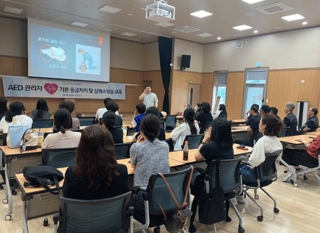 À̹ø ±³À°Àº °ø°ø½Ã¼³ µî¿¡ ¼³Ä¡µÈ AEDÀÇ ½ÇÈ¿¼º ÀÖ´Â ¿î¿µ°ú ÀÚµ¿½ÉÀåÃæ°Ý±â(AED) °ü¸®ÀÚµéÀÇ ÀÀ±Þ»óȲ ´ëÀÀ ´É·Â Çâ»óÀ» À§ÇØ ¸¶·ÃµÆÀ¸¸ç, °¢ ȸÂ÷¸¶´Ù °ü³» ÀÚµ¿½ÉÀåÃæ°Ý±â ´ã´çÀÚ 40¸íÀ» ´ë»óÀ¸·Î 2½Ã°£¾¿ ½Ç½À Á᫐ ±³À°À¸·Î ÁøÇàµÆ´Ù.